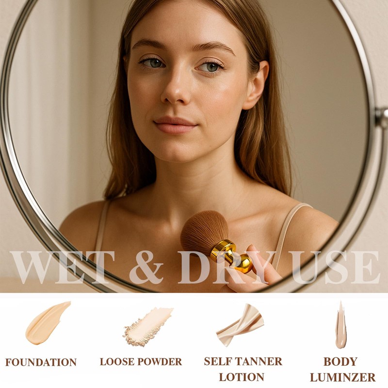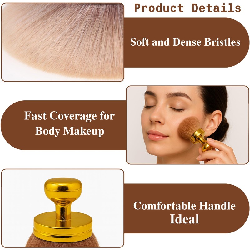 - 【EXTRA-LARGE MAKEUP BRUSH】Oversized oval-shaped brush head allows for efficient coverage, only takes 10s to achieve a perfect, poreless, and beautiful makeup finish. Perfect brush for leg, body, cheek makeup and back tanning applicator