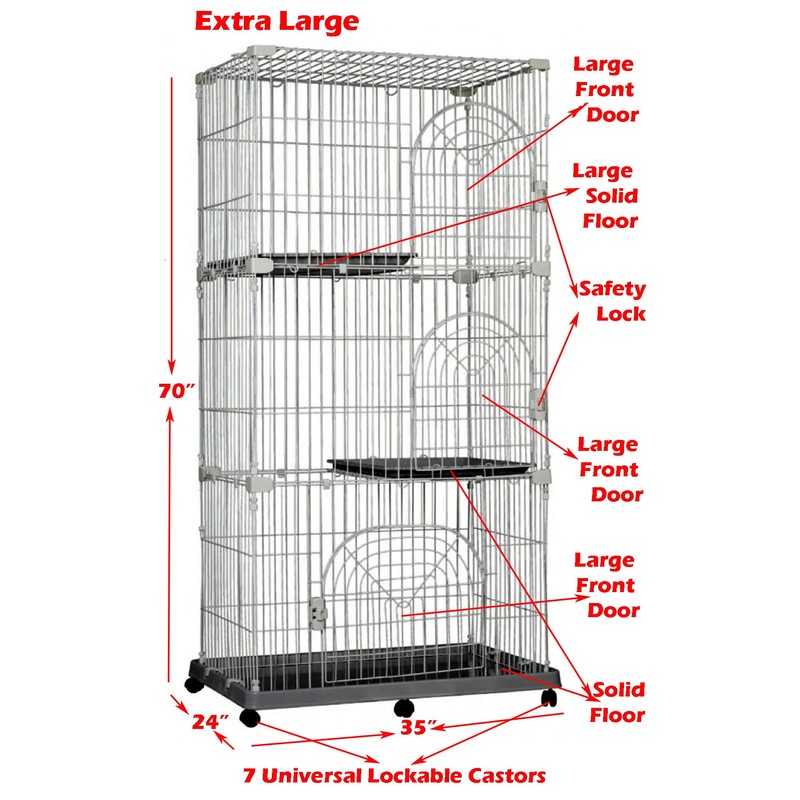 Extra Large Deluxe & Durable 3-Tiers Indoor Outdoor Wire Pet Cat Kitten Kitty Cage Condo Crate Kennels Playpen Shelves Enclosure with Wheels (70", Gray)