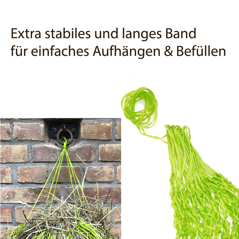 - The best choice: our hay nets are still knotted and processed by hand. With the long cord, the hay net can be securely attached to the stable, horse trailer, on the pasture.