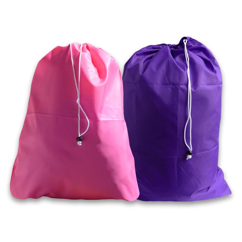 Extra Large Heavy Duty Drawstring Laundry Bags, Fluorescent Pink and Purple, (2 Pack)