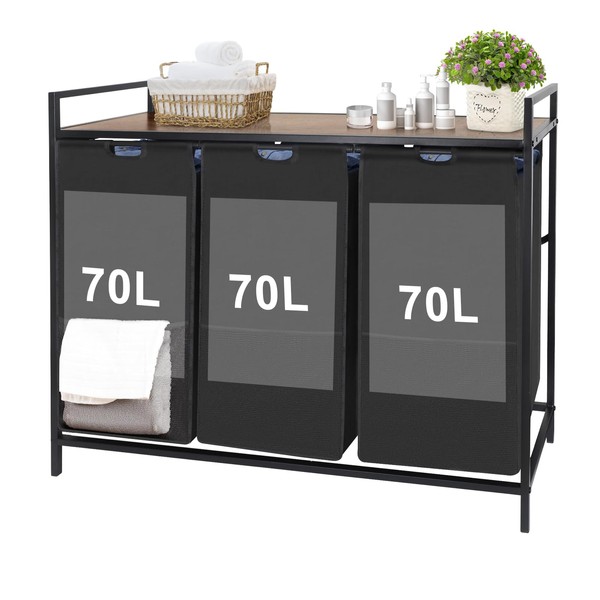 - Extra Large Laundry Hamper:Laundry hamper 3 section is different from traditional laundry basket.Made of a porch table and a moving three-part laundry basket, it is very practical for the market home. You can place perfume, laundry detergent, and vases on the porch table