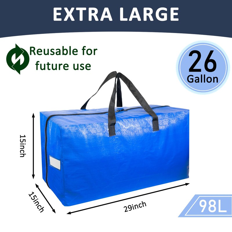 - Surprising Quality: Made of thick PE material, our moving bags are of super sturdiness and durability. Besides, the handle is triple sewn on our storage bag, which makes our bag bear 220 pounds at most.