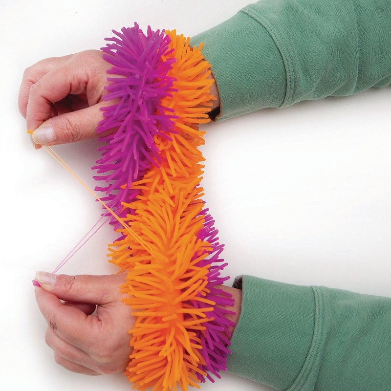 Stretch, pull, twist. fling! great tactile fun! measures 7 inch when unstretched. 2 each of 6 colors. The product is manufactured by S & S Worldwide and made in China.