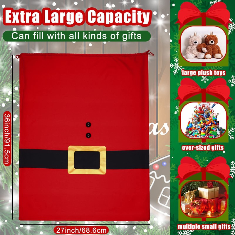 - Easy to Use and Organize: our Santa present sack have a drawstring design that can be closed after placing gifts, which helps you carry large gifts, and it is nice for storing surprises for your kids at Christmas; The Xmas Santa drawstring bag can be folded up after Christmas and stored for the next holiday