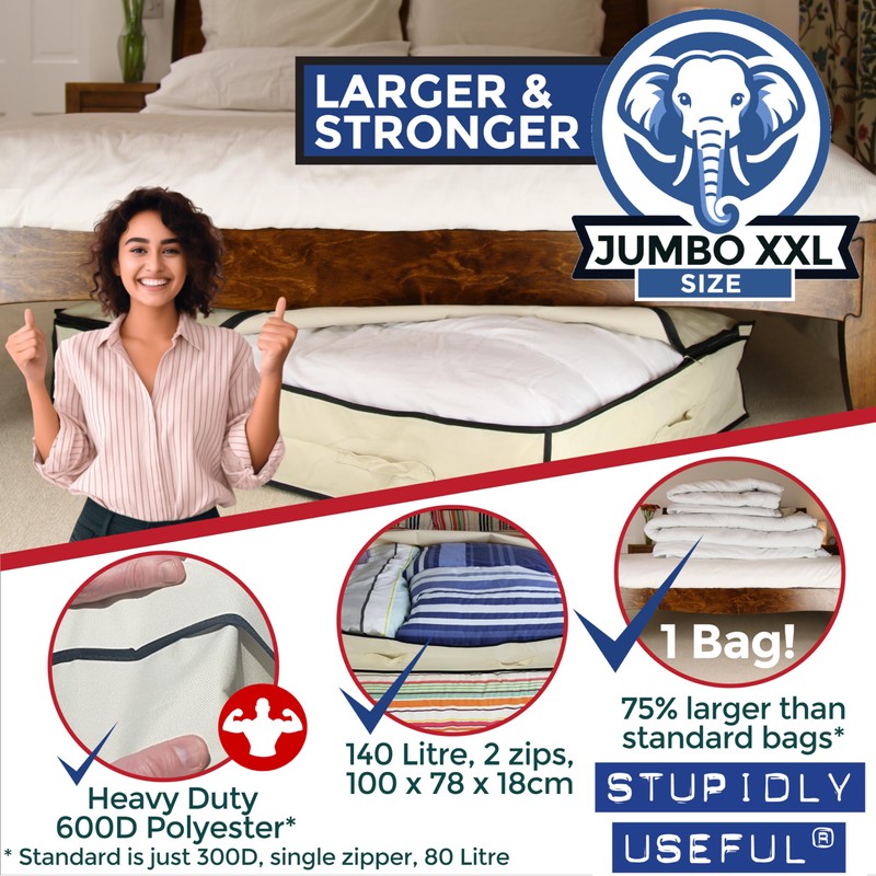 Extra Large Underbed Storage Bag, Stupidly Useful, Beige, 140 Litres 100x78x18cm