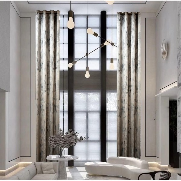 Extra long jacquard curtains with abstract pattern (1 Panel) custom made (50"Wx144"L, Grey/gold/beige)