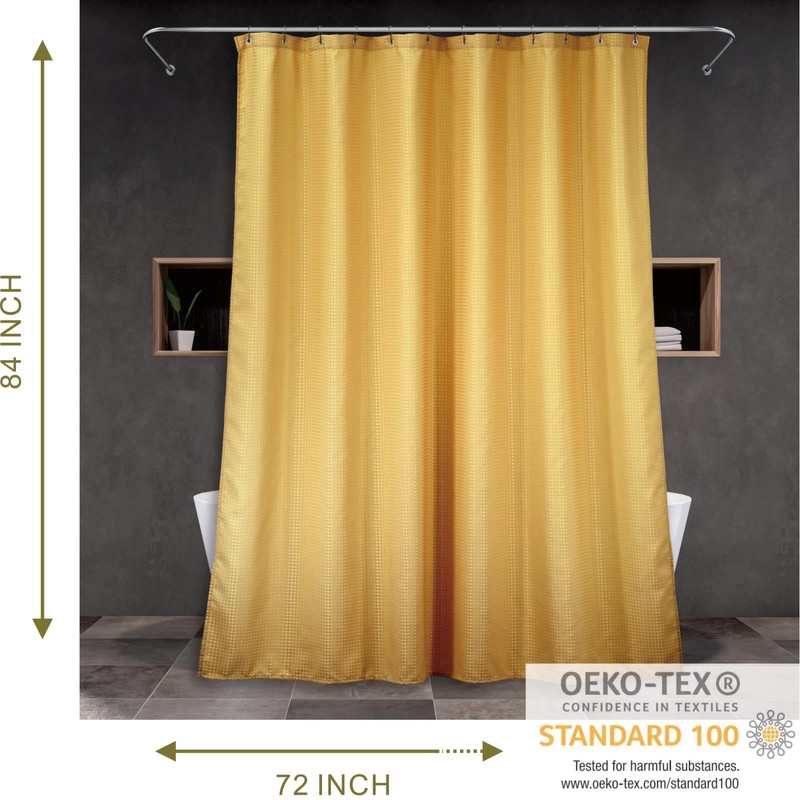 • SUPERIOR QUALITY & DURABLE This 256gsm thick gold waffle shower curtain provides a soft "cotton-like" feel and weighs about 1 lb more than typical 80gsm curtains. The heavy fabric provides better privacy and makes the curtain drape nicely. With rust resistant metal grommets, it fits most shower curtain hooks and prevents tearing. The durable fabric and reinforced hem resist shrinkage and retain its shape over time