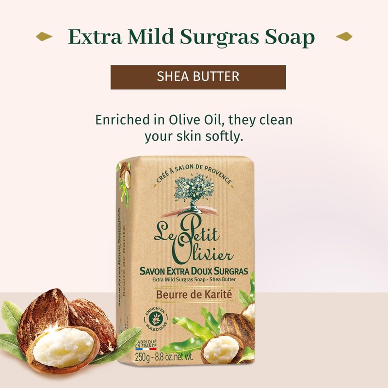 - SKIN-LOVING. Enjoy Le Petit Olivier soap enriched with natural extracts to softly clean your skin. These soap bars wrap skin in a gentle veil and leave behind a delicate scent. They are presented in a Kraft packaging which lets the scent diffuse.