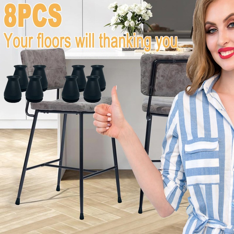 • Chair Leg Caps Easy to Install: Soft silicon protector is stretchable, lightweight and easy to put on and hold tightly, grip and fit is perfect, put it on directly to use, no tools needed, no chair foot cleaning needed. (please watch the video)