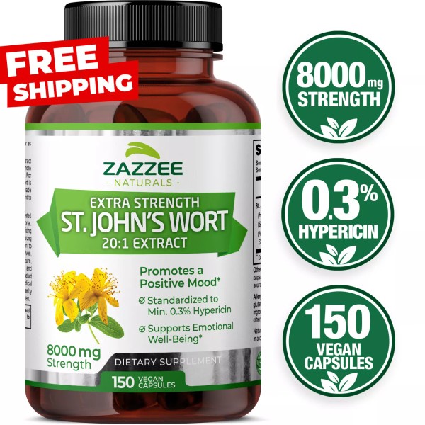 Extra Strength St. John’s Wort 20:1 Extract, 8000 mg Strength, 0.3% Hypericin