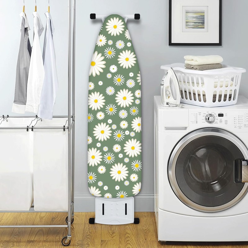 - EXTRA THICK MATERIAL FOR BETTER IRONING: This sage green white daisy spring flowers ironing board cover adopts natural breathable cotton with scorch resistant finish as cover. Using ultra thick stitched fibers, the thickness can reach 6mm. This synthetic fiber evenly radiate heat and steam, achieve high temperature ironing and safer
