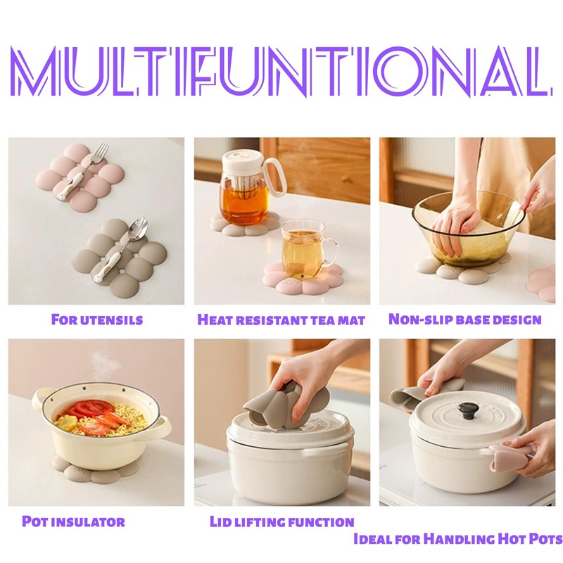 - Multi-Purpose Design,Versatile and Practical:Not only suitable for holding hot pots and plates,but also ideal for protecting the bottom of kitchen accessories,serving as coasters,or even being used as decorative silicone pads for kitchen.Whether for home or outdoor use,silicone pot holders for kitchen is the perfect choice.
