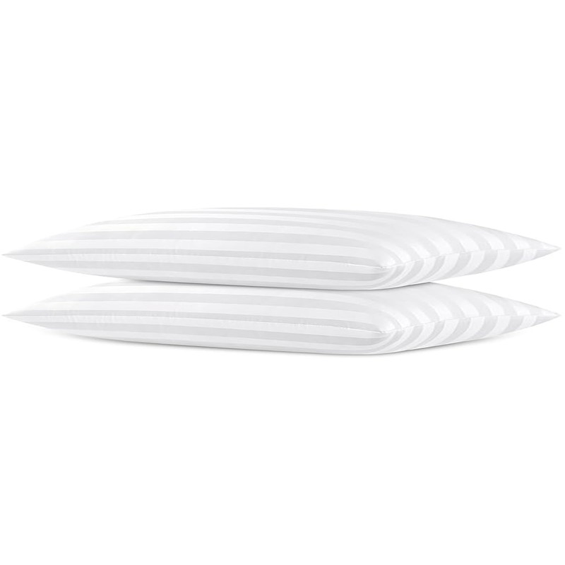 - SOFT FLAT COMFY BED PILLOW:Our bed pillows covers are made of high-quality microfiber fabric material,exquisite striped design filled with a soft 3D down alternative,800 GSM filling allows the pillow to provide soft medium support and plenty of comfort for your head, neck and shoulders.