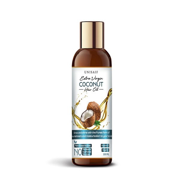 - UNISAIF's Extra Virgin Coconut Hair Oil is synthesized from cold pressed method to extract nutrients of coconut in its purest form. Both extra virgin coconut oil and vitamin E provides root nourishment, helps in reducing scalp irritation, dandruff, premature greying. Allows repair and revitalization of hairs. Can be used for other skin issues as well.