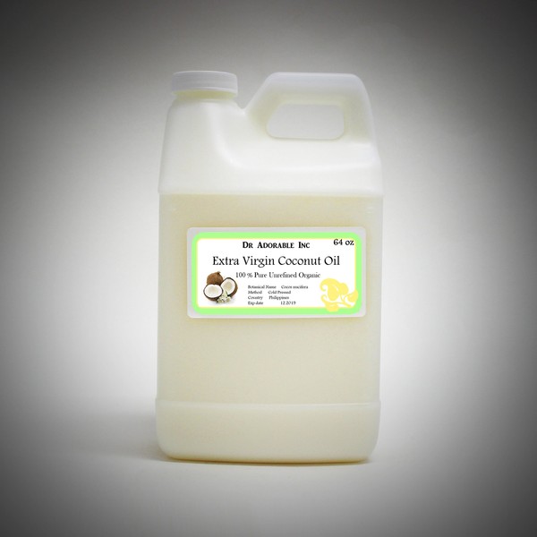 Dr Adorable - 64 oz - Coconut Extra Virgin Oil - 100% Pure Natural Organic Cold Pressed