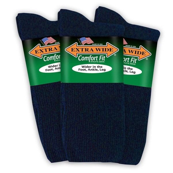 Extra Wide Athletic Crew Socks for Men (3 Pack) (12-16 (up to 6E wide), Navy)