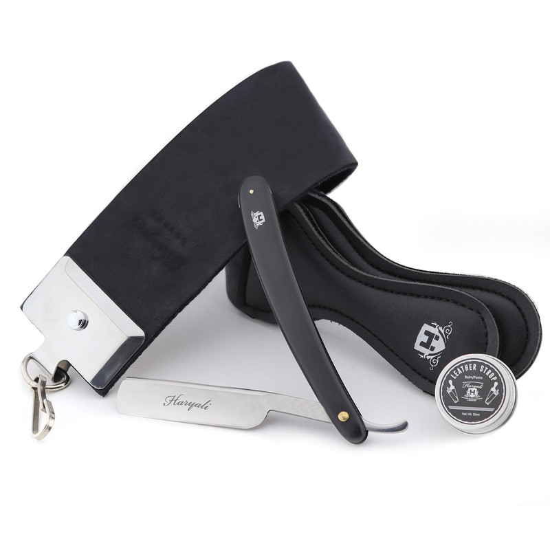 Extra Wide Black Leather Strap Razor Set 3 Pieces with Leather Strop and Grinding Paste