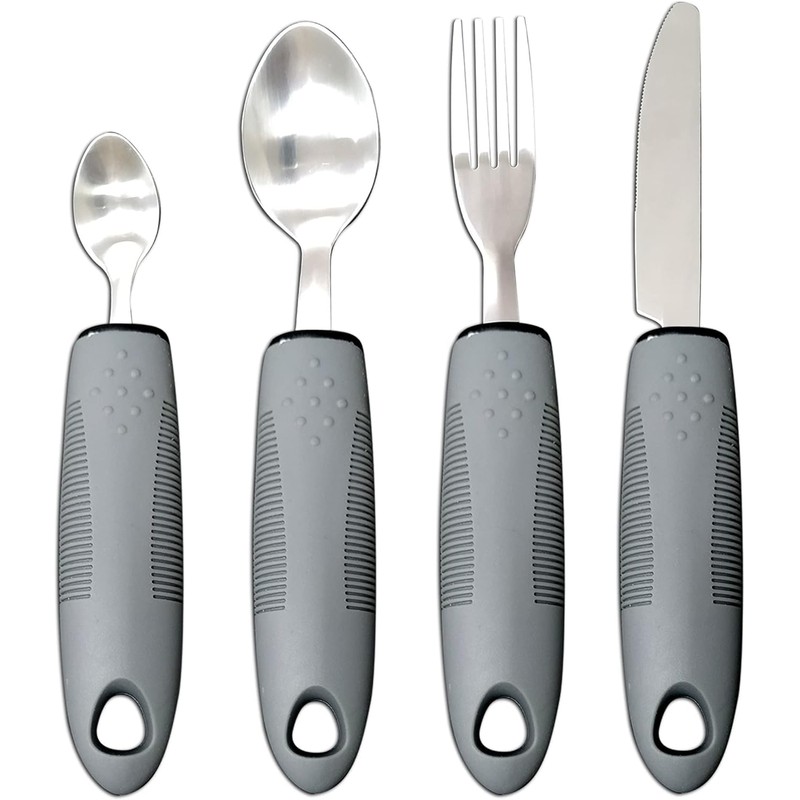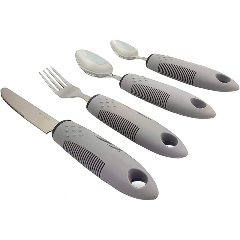 Extra Wide Handles Easy Grip Cutlery Set, Chunky Handles, Corfort Grips Disability Ideal Dining aid for Elderly Disabled Arthritis Parkinson's Disease Tremors Sufferers (4PCS Grey)