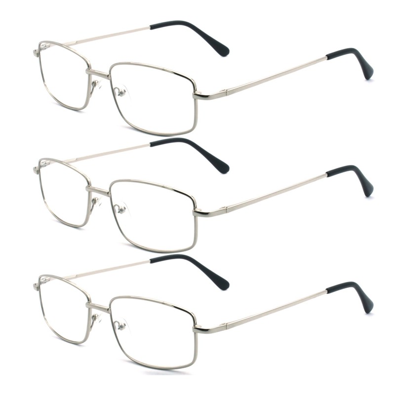 EYEZOOM 3 pack unisex extra wide rectangular metal frame reading glasses. Classic style with spring hinges fits any face shape, and the scratch-free lenses bring you a clear visual experience. Whether you are looking for reading glasses for office or home. EYEZOOM reading glasses will give you the premium protection. They are also perfect gifts to your parents and the elderly. Strength available: +1.00 / +1.25 / +1.5 / +1.75 / +2.0 / +2.25 / +2.5 / +2.75 / +3.0 /+3.5 Color available: Black / Brown / Gunmetal / Navy Blue / Silver Product includes the 3 pairs of EYE ZOOM reading glasses & 1 pair of soft pouch & 1 pair of clean cloth &1 pair of eyeglasses strap. Care: Please do not use finger or rough cloth to wipe and clean the lens as it may either stain or scratch the lens and reduce the performance of the lens, please use the soft cleaning cloth to gently wipe away dust.
