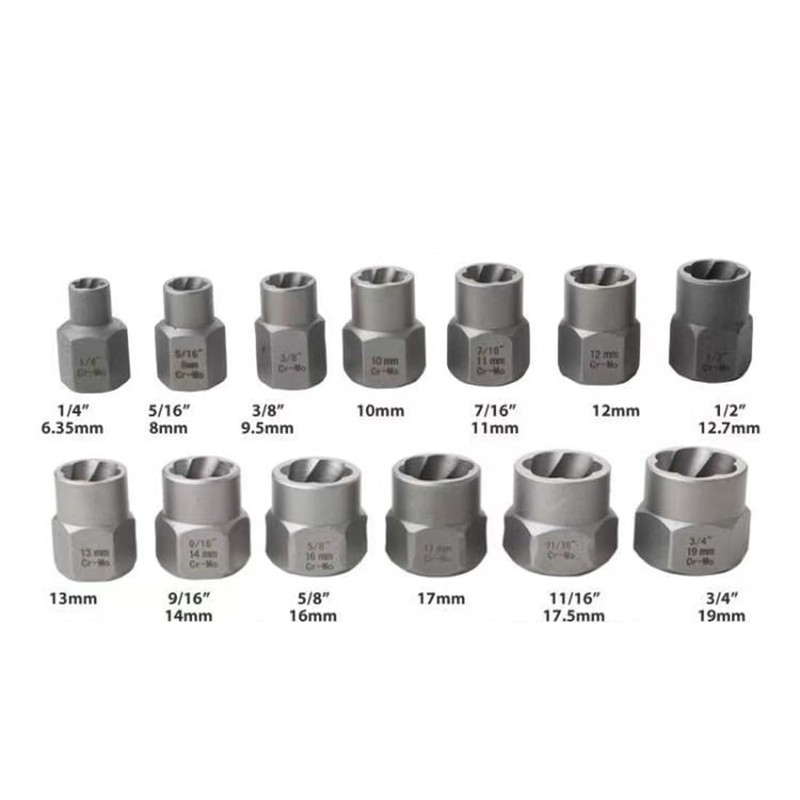 - 13pcs, 6.35mm, 8mm, 9.5mm, 10mm, 11mm, 12mm, 12.7mm, 13mm, 14mm, 16mm, 17mm, 17.5mm, 19mm