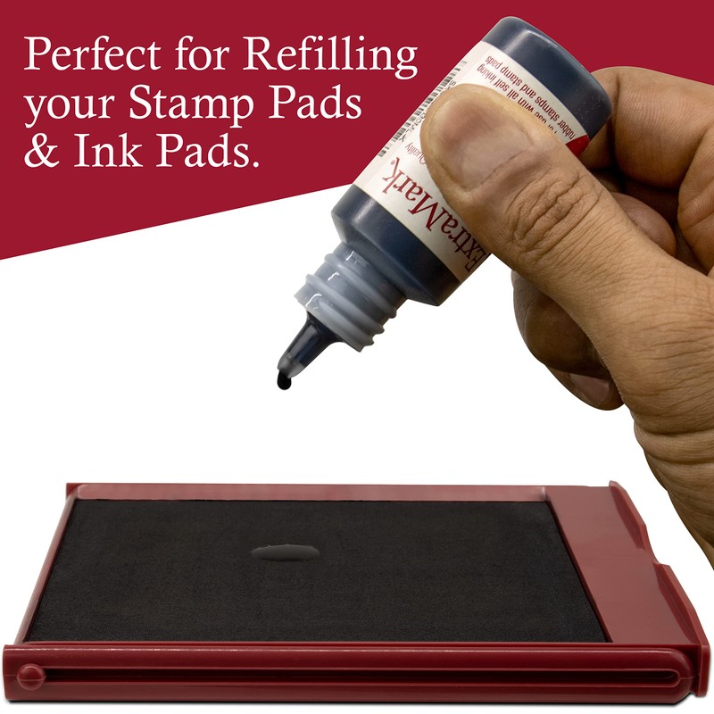 Replenish your old rubber stamp pads or self inking stamps for a fraction of the cost of new ones with ExtraMark Premium Refill Ink. ExtraMark is known for creating high quality products that simplify home or office tasks. Don't settle for generic ink that leaves faded impressions. Use ExtraMark Premium Refill Ink for crisp images every time.