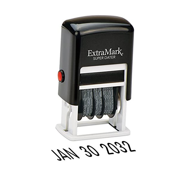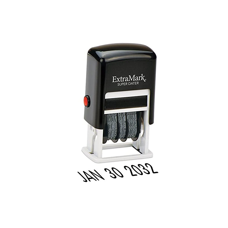 ExtraMark Super Dater Ink Stamp - Self-Inking Rubber Date Stamper - for Documents, Library Books & More - Black Ink