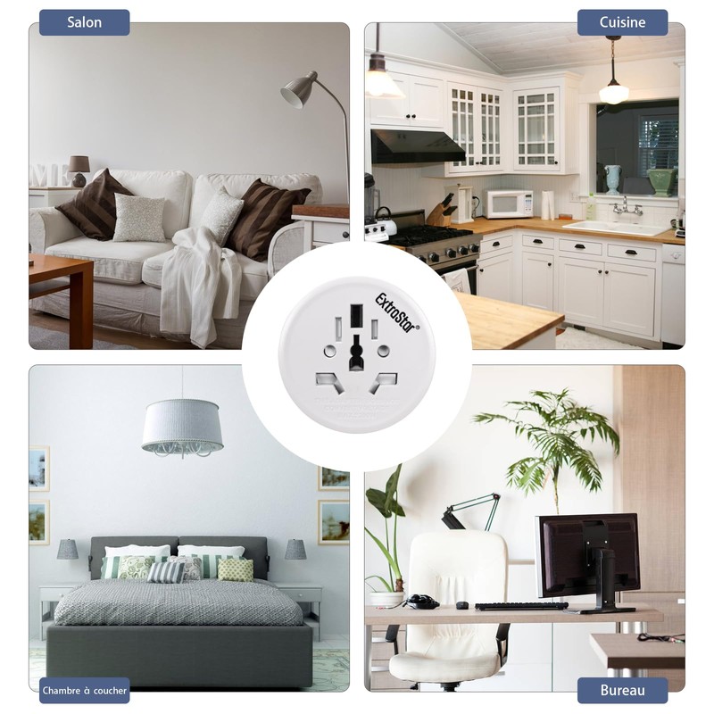 EXTRASTAR 2 Pack Travel Adapter International Plug Adapter to France for English, UK, USA, Canada, China, Australia, Italy, World Plug