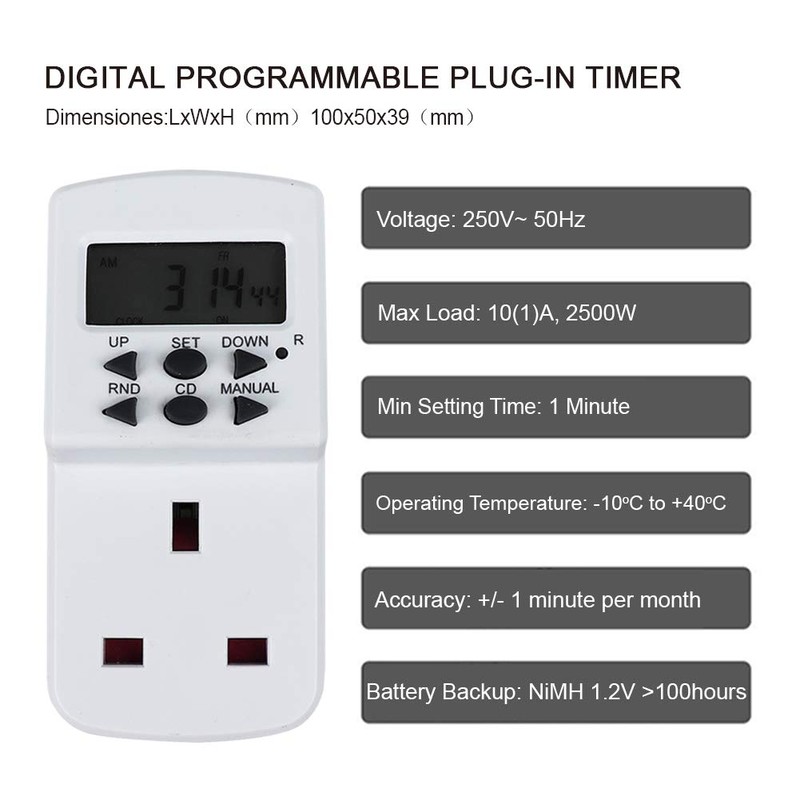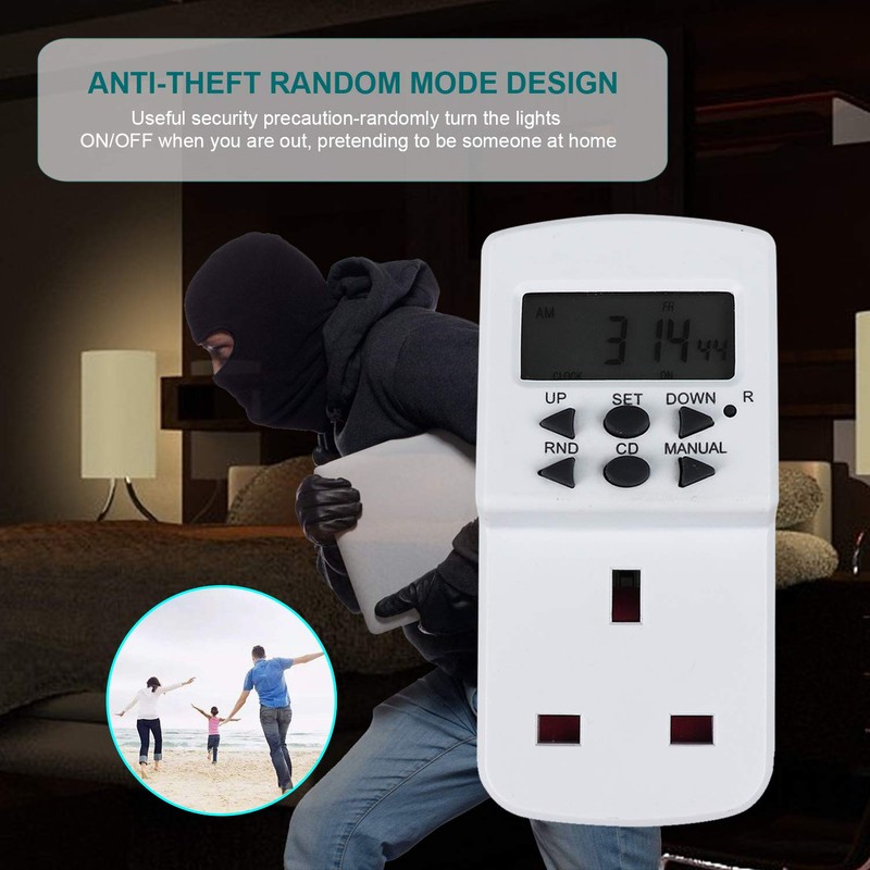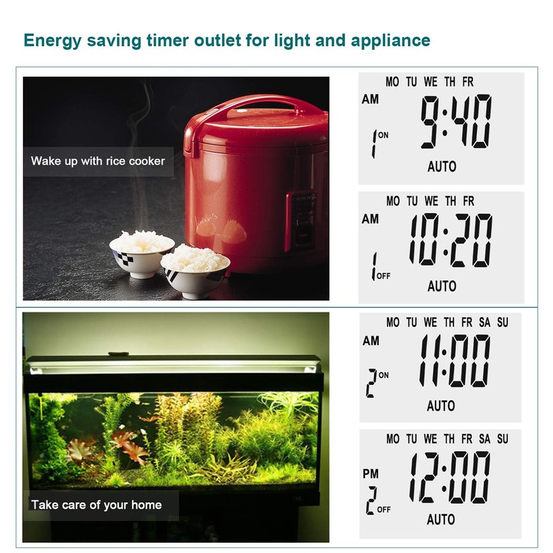 - 【Auto-Protection Mode】Plug-in timer plug socket allows with a setting which randomly turns lights on and off over a period of time to keep potential burglars away as they will think you are home.
