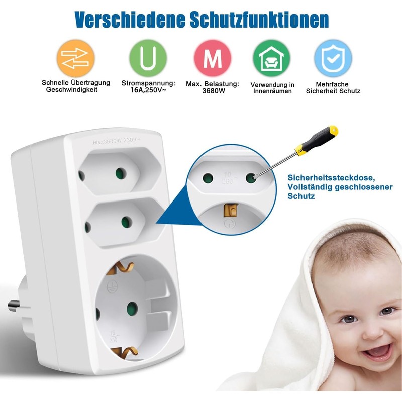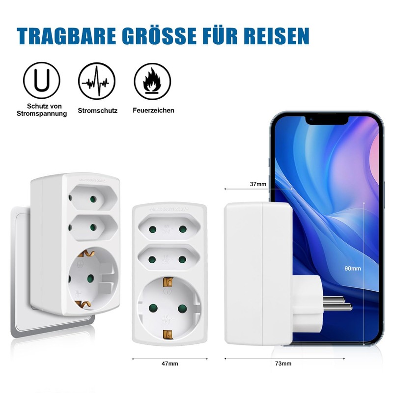 - Quality certification: Our adapter plugs are CE certified for reliable quality. Thanks to the over-current protection, you can be sure that you can use the socket to charge your devices. In addition, the socket is equipped with internal earthing contacts to prevent children from accidentally touching it, which is very safe.