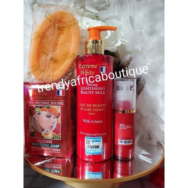 extreme white 3pcs. Extreme White Strong Lightening Body Lotion, Soap & Serum With Argan Oil