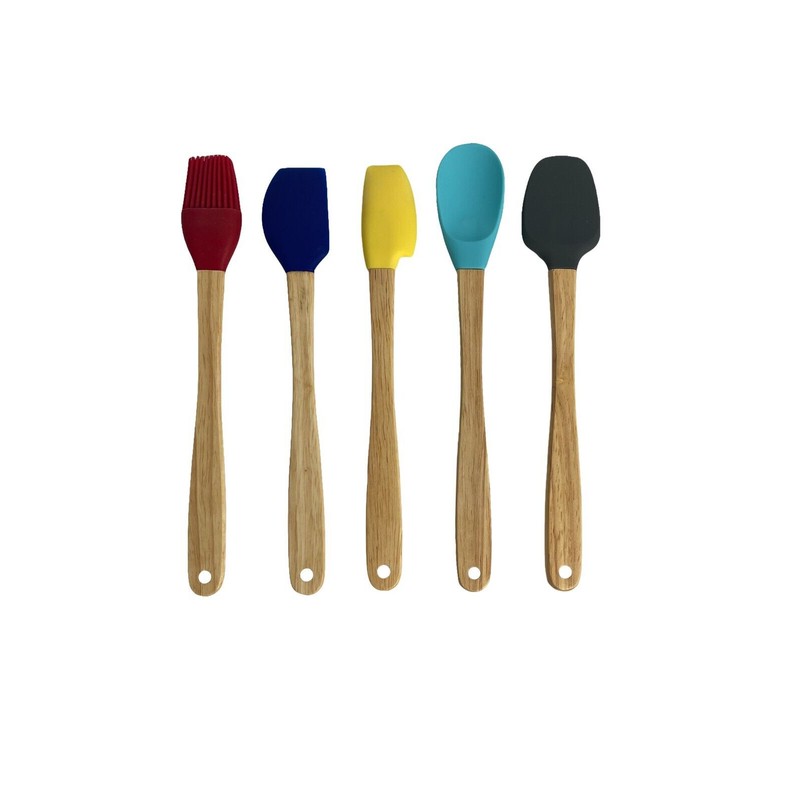 - SAFE TO USE: Food grade silicone and bamboo wood materials. Measures 8.5- by 1.25- inch (21.6- by 3.2- cm) Dishwasher safe; Color: Red, Yellow, Gray, Light Blue, Dark Blue
