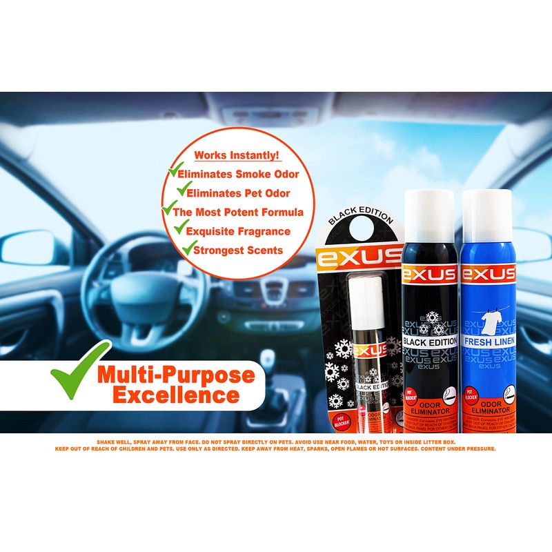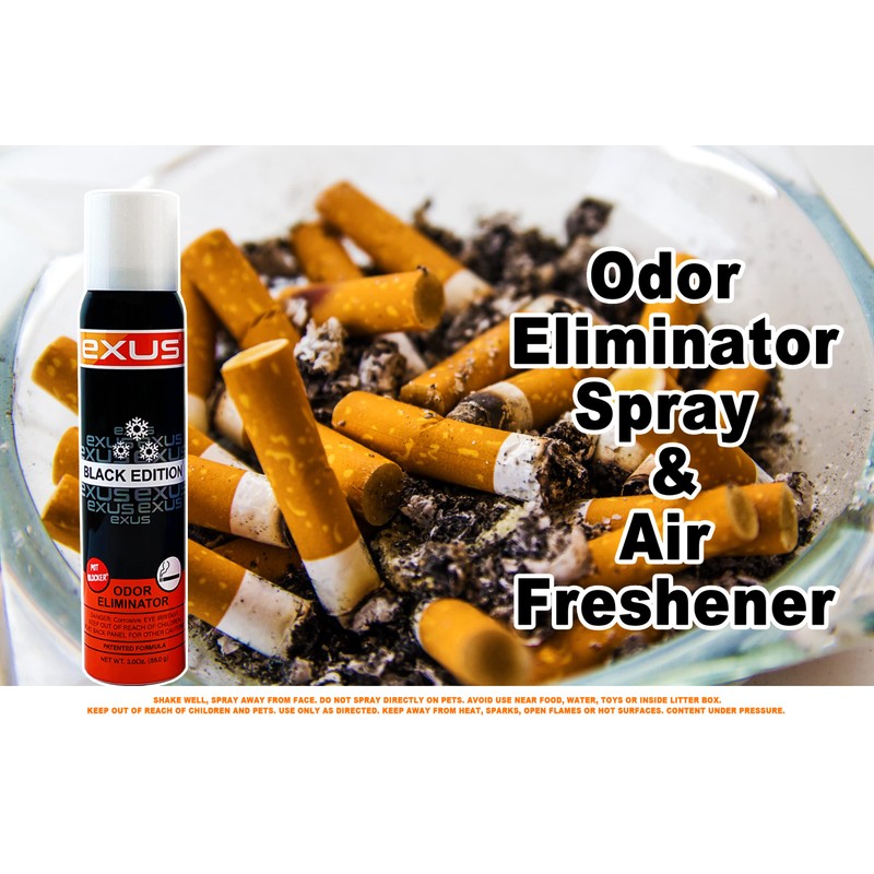 - Powerful Patented Formula. that eliminates Any Odor Completely. Unlike other Products that use oil and water, that mixes with the bad smell and doesn't remove it. Exus Spray quickly eliminates the bad smell, plus leaves a fresh scent