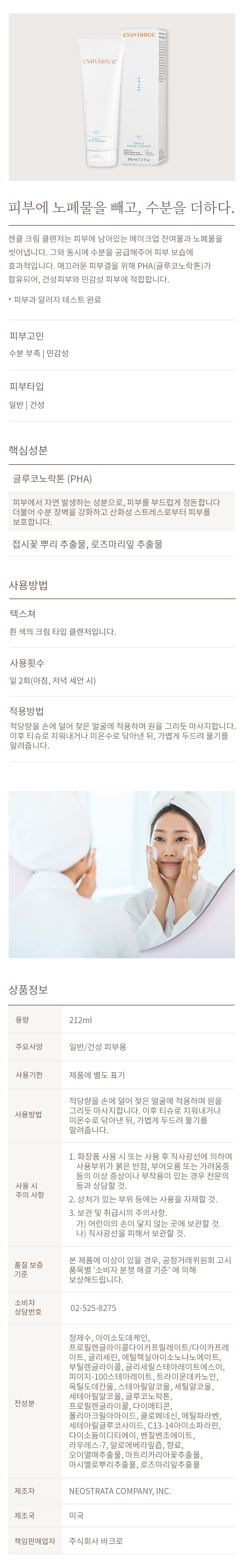 Exviance Gentle Cream Cleanser 212ml (Soothing/Hypoallergenic/PHA) / 엑스비앙스 젠틀 크림 클렌저 212ml (진정저자극PHA)