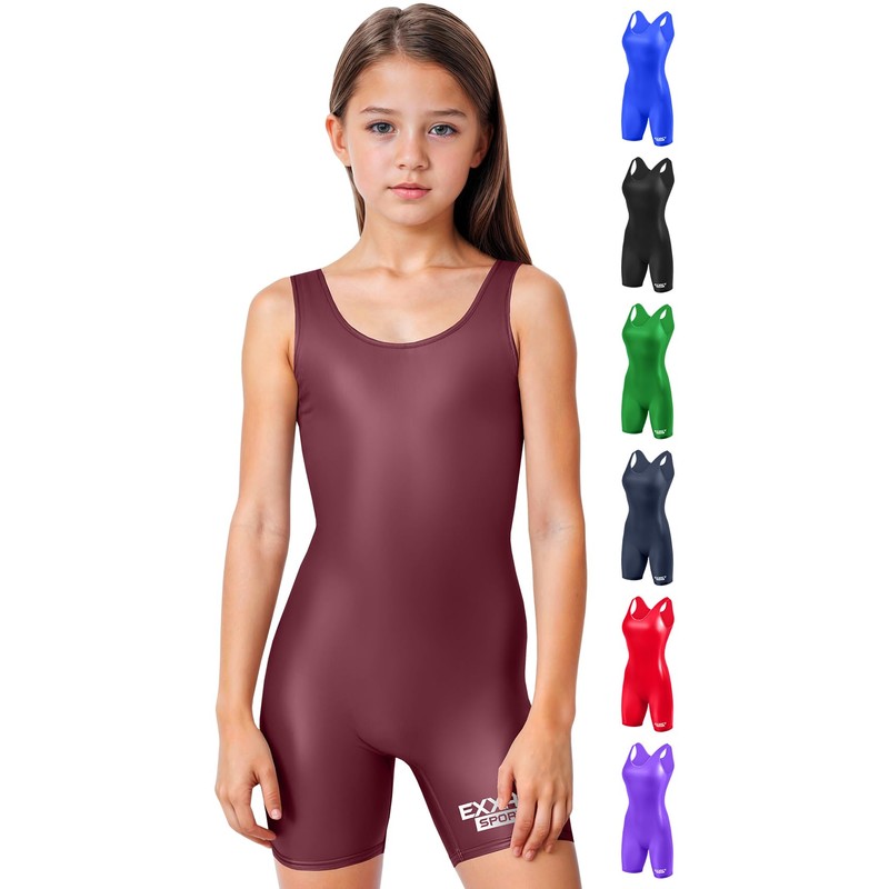 Exxact Sports Plain Youth Girls Wrestling Singlet – High-Cut, Full-Coverage Kids Wrestling Singlets For Girls (Maroon, YM)