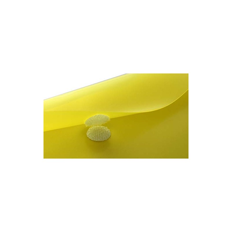 EXXO by HFP 35053 Document Folders A5 Landscape Transparent Yellow Document Folder for Filing with Euro Perforation, Filing Edge, Flap and Velcro Fastening Pack of 10