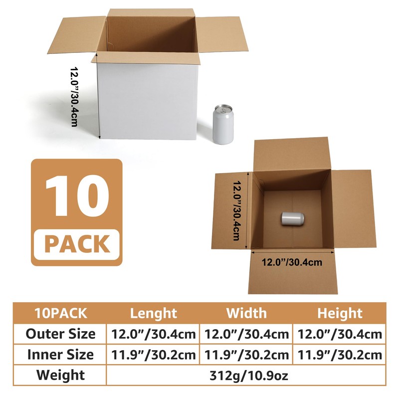 - DIMENSION: Outer size of cardboard shipping boxes is 12"(L) x 12"(W) x 12"(H), and the inner size is 11.9"x11.9"x11.9"