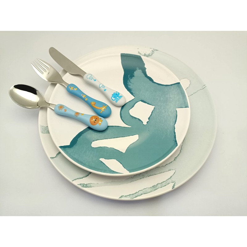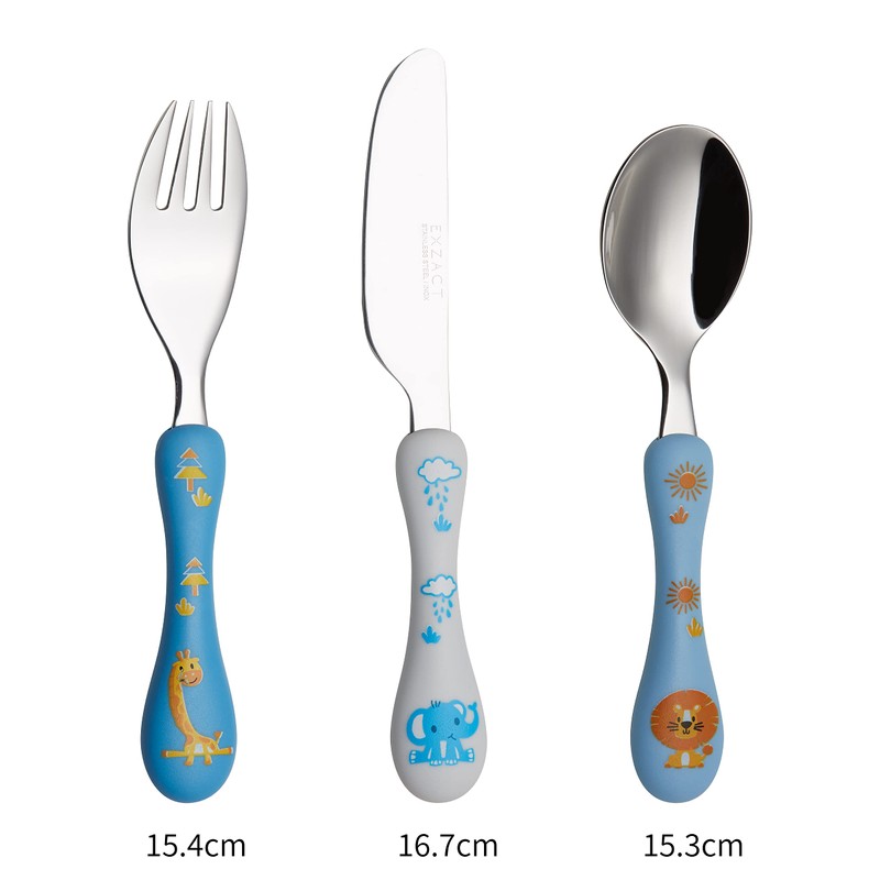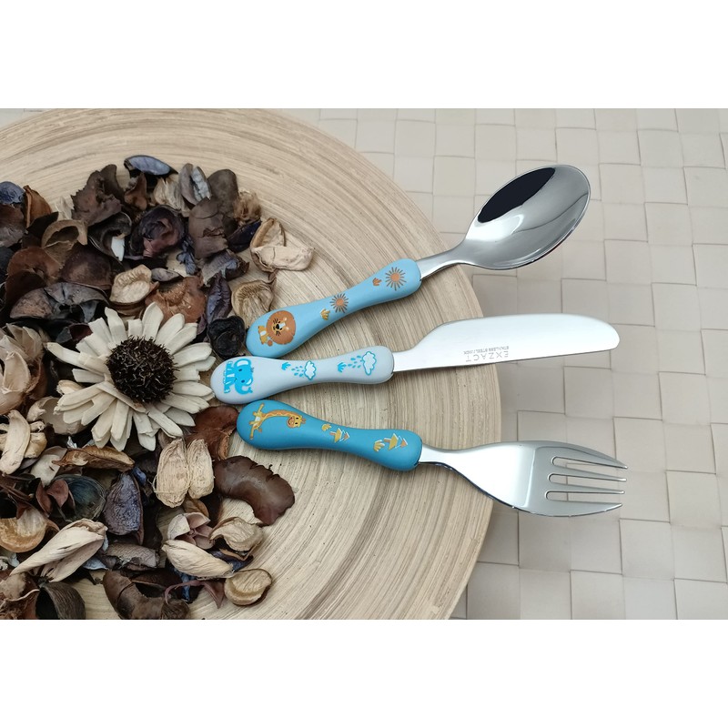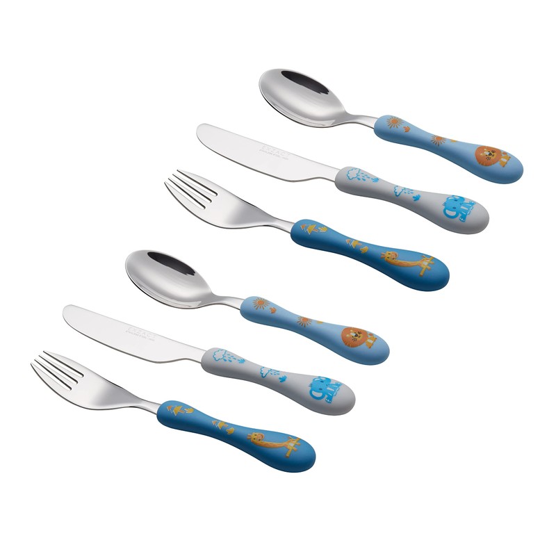 Exzact Children's Cutlery Set 6 Pieces Stainless Steel / Dishwasher Safe - 2 x Forks, 2 x Knives, 2 x Tablespoons (Safari x 6)