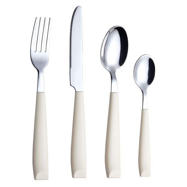 EXZACT Cutlery Set Coloured 16pcs Stainless Steel, Silverware with Coloured Handles Comfortable to Hold (Cream x 16)
