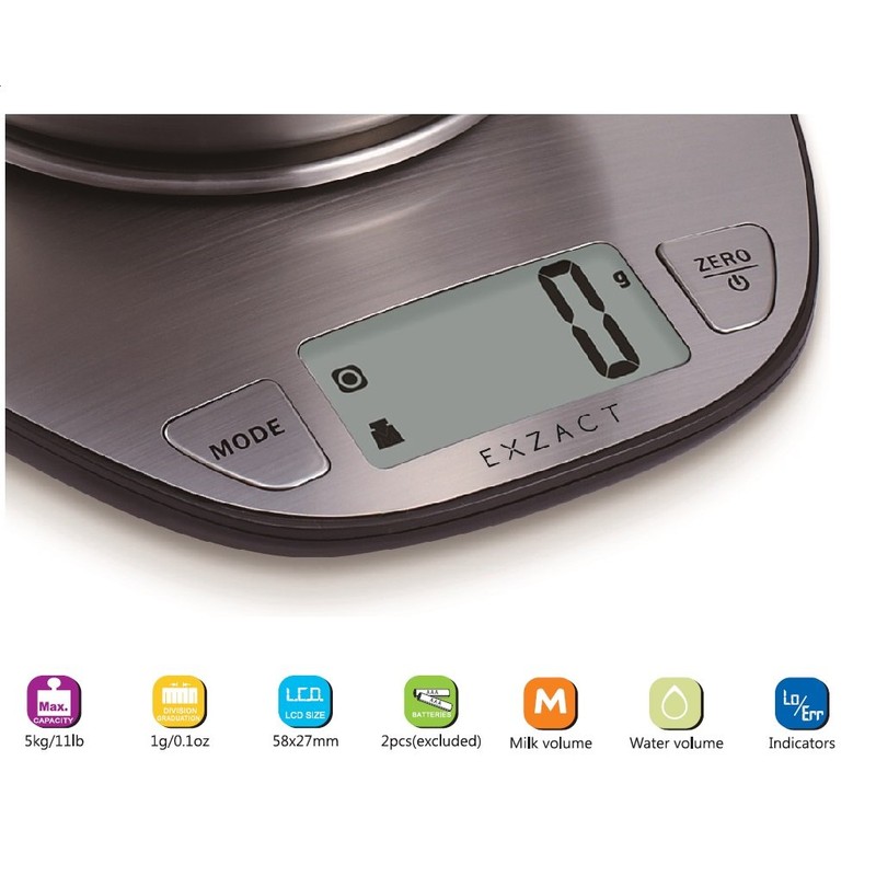 EXZACT Electronic Kitchen Scale with a Mixing Bowl Stainless Steel -Digital Baking Scale - Food Scale - Support Imperial and Metric Switch - Capacity Max 5kgs