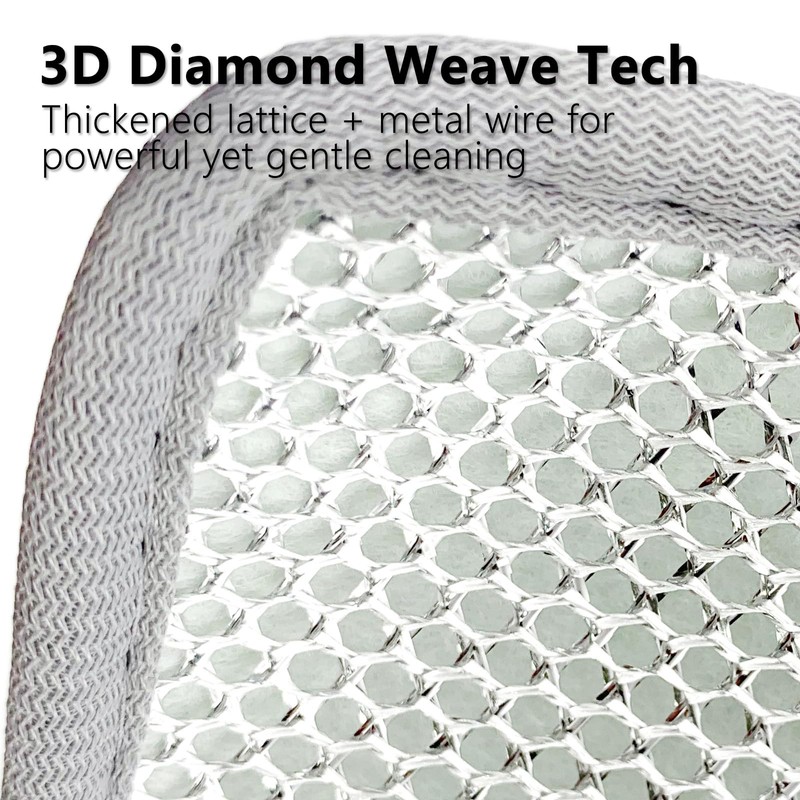 - Upgraded Diamond Weave Technology Crafted with three layers of thickened diamond-shaped lattice weaving and premium metal wire, these dishwashing rags ensure efficient oil stain removal while keeping your cookware and hands safe.