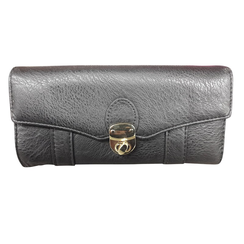 Eye Catch Ladies Faux Leather Twist Lock Purse Womens Multi Credit Card Coin Wallet Black