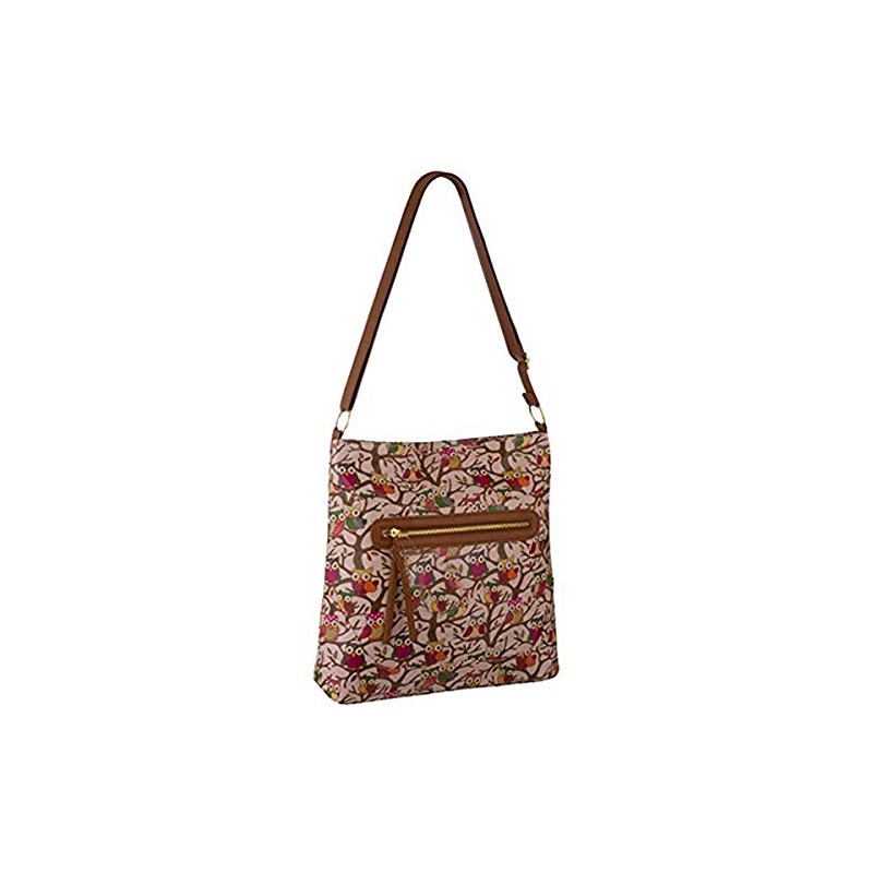 Eye Catch TM - Womens Oil Cloth Cross Body Ladies Owl Design Shoulder Bag Handbag Light Pink