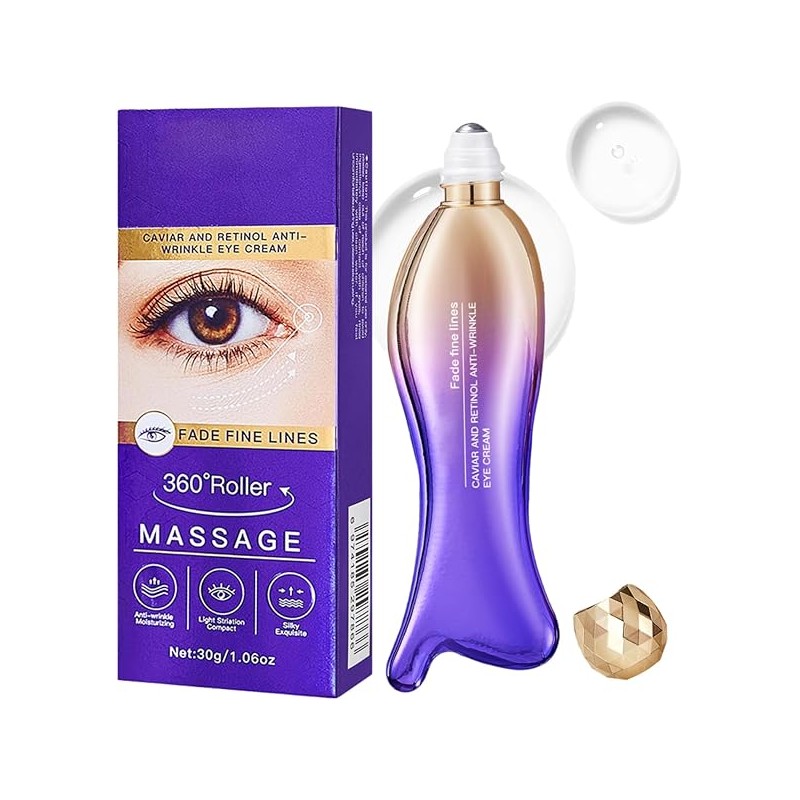 Eye Cream for Dark Circles and Puffiness - Retinol Eye Cream Anti Aging -Ey e Bags Treatment for Women - Caviar Eye Se rum for Wrinkles - Moisturizing under Eye Cream -Ey e Serum with 360°Massage Ball