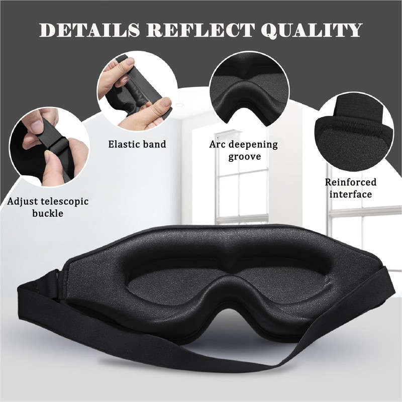 - No light Leakage: With the heightened 22 mm adaptive hollow nose bridge, Sleep mask fully fits all nose shapes, helps improve sleep, and gets longer deep sleep