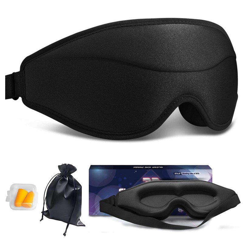 Eye Mask for Sleeping Light Blocking,Side Sleeper Women Men, 3D Contoured Cup Sleeping Mask, Soft Breathable Sleep Eye Mask with Adjustable Elastic Strap for Flight Nap,Black, with 2 Earplugs