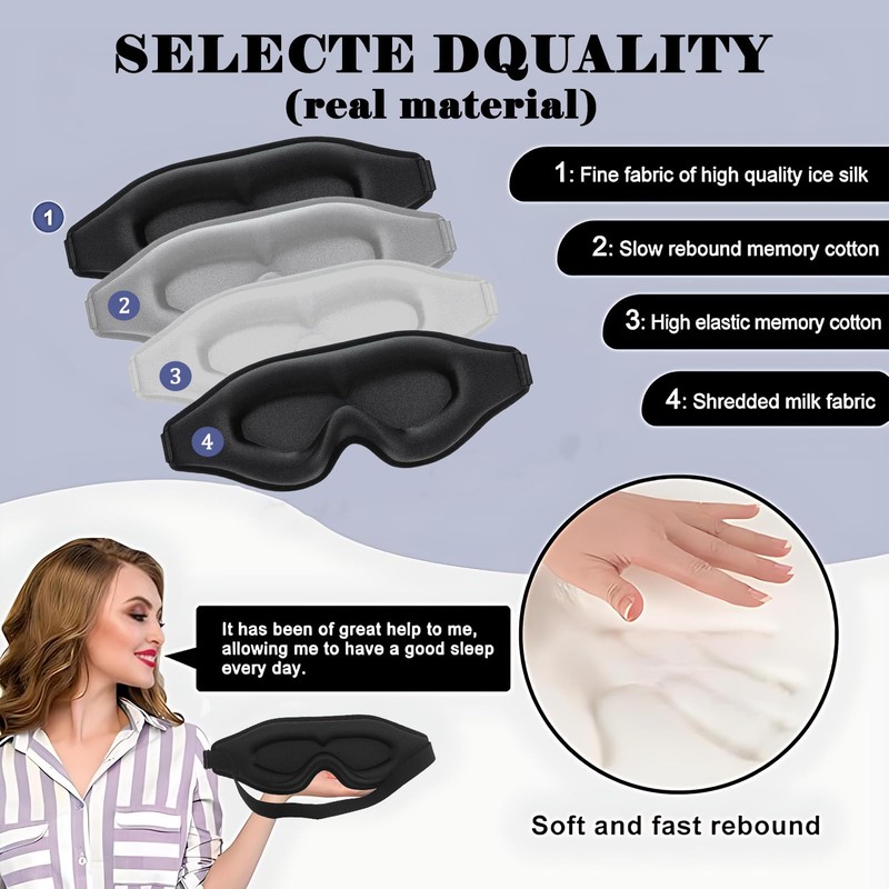 - Comfortable and Soft: Made of smooth cooling fabric lining and premium 6-layer low rebound soft memory foam make the sleep eye mask breathable and lightweight, comfortable for travel, nap, flight, camping, and Yoga