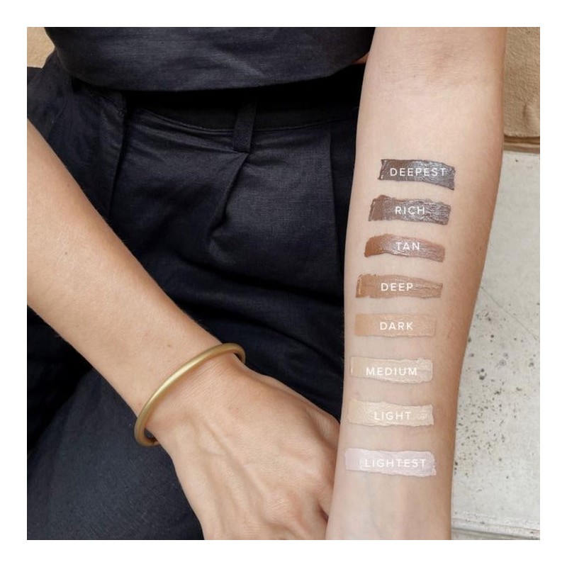 Boosted with 3 natural forms of potent Vitamin C to protect, smooth and visibly brighten the skin over time. This highly pigmented, creamy formula offers smooth, complete coverage and all-day wear. Sets without creasing and can be layered for maximum coverage.