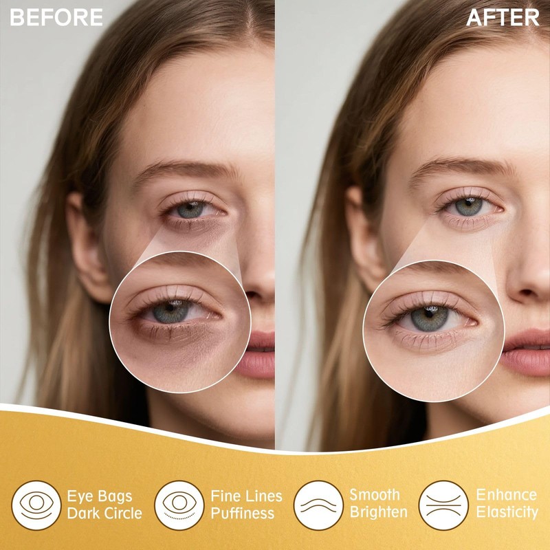 - Effective Solution for Dark Circles & Puffiness: This gold eye mask helps to smooth the skin and minimize dark circles. Specifically for dark circles and puffy eyes, our gold eye patch contains rich nutrients to reduce dark circles, lighten wrinkles, moisturize the skin, say goodbye to eye fatigue, and reverse the condition of the skin, bringing you a brand-new experience for your eye area.