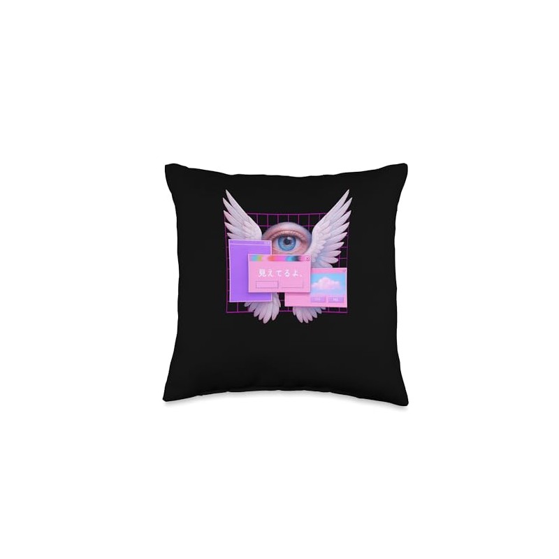 Eye With Wings Computer Glitch Seraphim Weirdcore Aesthetic Throw Pillow