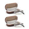 EYE ZOOM 2 Pairs Compact Rectangular Metal Folding Reading Glasses with Hard Case Comfort Fit for Men and Women, Silver Frame, Light Brown Case, +2.50 Strength